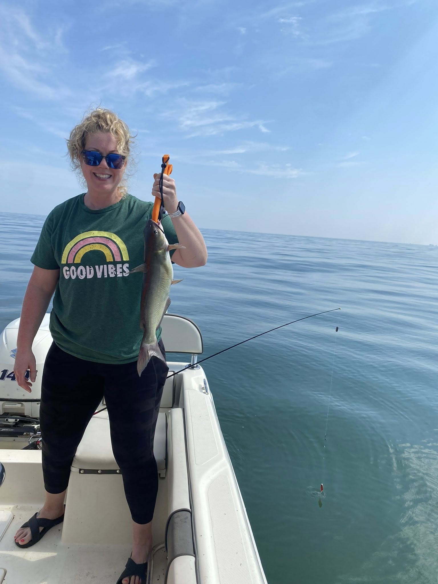 Blue Catfish: Lake Erie's blue cats are the giants of the ecosystem. While not as common as the other species, hooking into one of these behemoths can be the highlight of your trip. They prefer deeper, cooler water and can grow to over 50 pounds in Lake Erie. Blue cats are most active at night, but we occasionally tangle with them during daytime trips, especially in areas with deep holes or near river mouths.